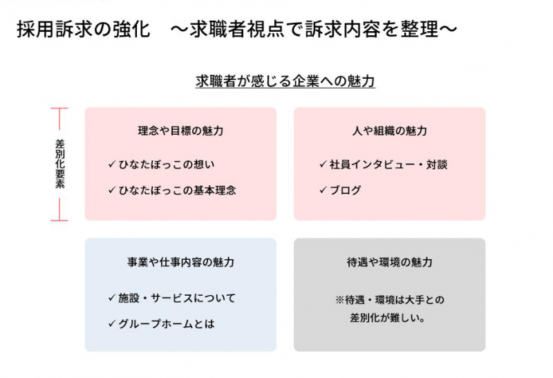 - 採用活動を通じて、社内でも理念や価値観の再認識が進み、職員のモチベーション向上にもつながった。