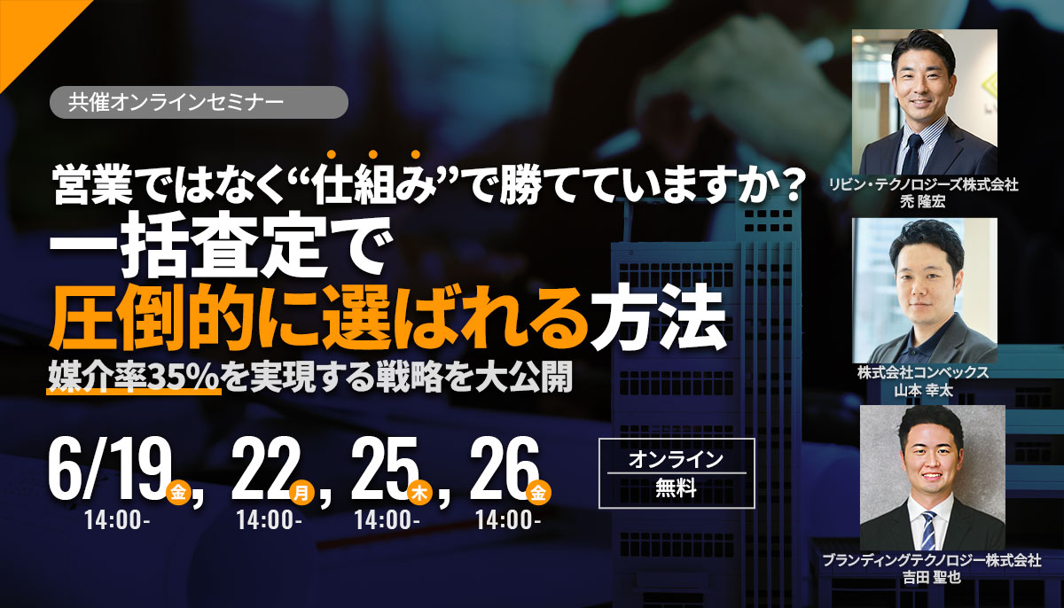 • 営業ではなく“仕組み”で勝てていますか?一括査定で圧倒的に選ばれる方法媒介率35%を実現する戦略を大公開